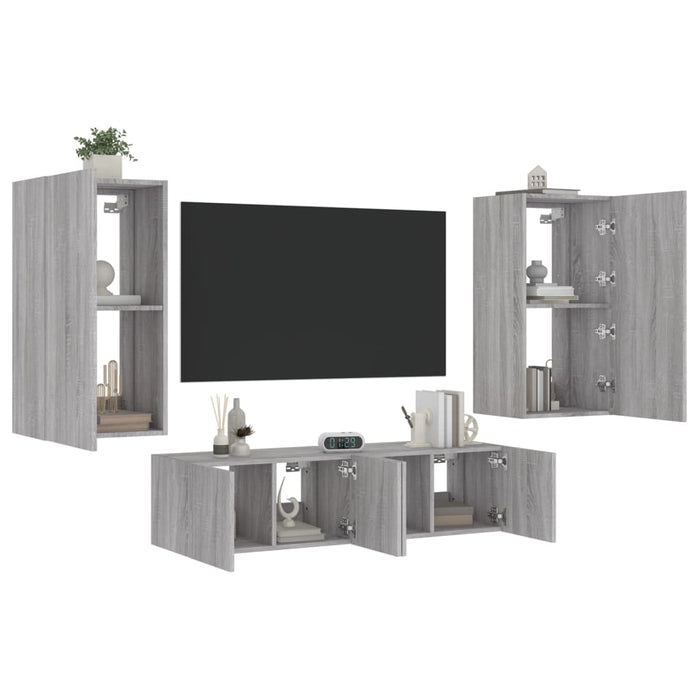 4-teiliges TV-Wandmöbel-Set mit LED aus Holz