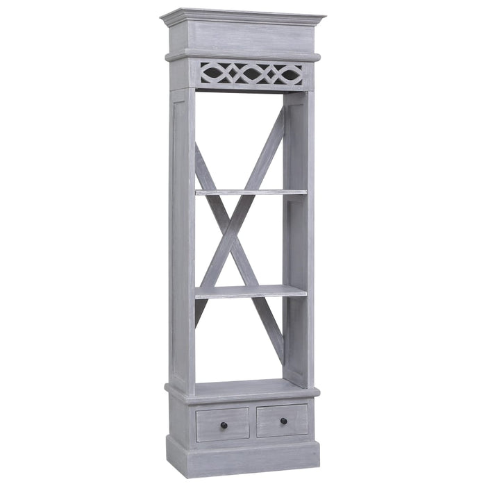 La bibliothèque en bois massif est fabriquée en bois d'acajou massif avec une finition gris délavé et est extrêmement durable et robuste. L'acajou est un bois dur tropical qui se distingue par sa beauté, sa durabilité et sa couleur. Cette armoire dispose de 3 compartiments ouverts et de 2 tiroirs offrant suffisamment d'espace pour ranger des livres et des objets de décoration.