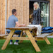 - Gemakkelijk te Onderhouden: De geïmpregneerde afwerking vereenvoudigt het onderhoud en verlengt de levensduur van de tafel, waardoor u meer tijd heeft om te genieten van uw buitenruimte en minder tijd hoeft te besteden aan onderhoudstaken.