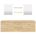 Deze trendy set bestaat uit een wandgemonteerd badkamerkastje, een praktische spiegel en twee handige planken. Het bewerkte hout is van hoge kwaliteit en biedt een glad oppervlak, waardoor het sterk, stabiel en vochtbestendig is. Dit meubel biedt niet alleen extra opbergruimte voor je badkamerbenodigdheden, maar is ook perfect voor het plaatsen van een waskom op het blad. Dankzij de wandgemonteerde functie neem je geen kostbare vloeroppervlakte in beslag. De mooie spiegel maakt je dagelijkse routine compleet en voegt een elegante touch toe aan je interieur.