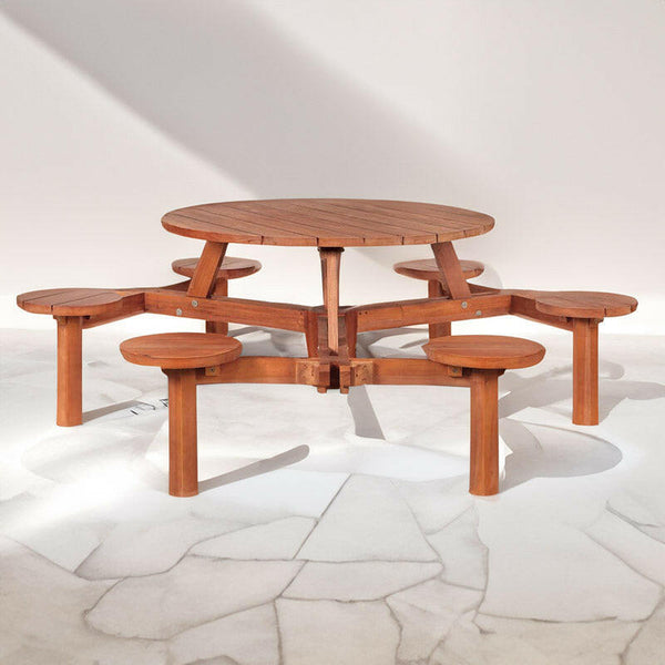 Waarom kiezen voor deze ronde hardhouten picknicktafel?
