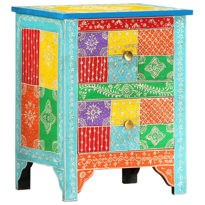 Verander de sfeer van je slaapkamer met het Nachtkastje Velinor | Zomango. Dit adembenemende houten meubelstuk combineert artistiek vakmanschap met praktische bruikbaarheid. Door de handgeschilderde decoraties schittert het nachtkastje in elk interieur. Het stevige ontwerp en de natuurlijke materialen maken het tot een duurzame én esthetische keuze.