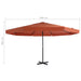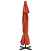 Deze parasol kan eenvoudig geopend en gesloten worden door aan de knop op de paal te draaien. De aluminium paal zorgt er samen met de 8 stevige aluminium baleinen voor dat de parasol erg duurzaam is. Bovendien zorgt de grote, afneembare stalen kruisvoet voor extra stabiliteit zonder al te veel ruimte in beslag te nemen.