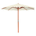 De parasol is voorzien van een hoogwaardig parasoldoek dat gemaakt is van uv-beschermend en anti-vervagend polyester. Hierdoor ben je verzekerd van zowel duurzaamheid als eenvoud in onderhoud. Met een diameter van 48 mm is de paal perfect voor bevestiging in een bestaande voet of in het midden van een tafel. Het stevige houten materiaal en de acht robuuste baleinen zorgen ervoor dat de parasol stabiel blijft, zelfs bij een zuchtje wind. Dankzij het praktische zwengelmechanisme kun je de parasol moeiteloos openen en sluiten.