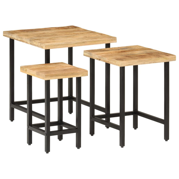 De set bestaat uit een grote tafel met afmetingen van 45 x 45 x 50 cm, een middelgrote tafel van 35 x 35 x 45 cm en een kleine tafel van 25 x 25 x 40 cm. Dit slimme design stelt je in staat om de tafeltjes naar behoefte te rangschikken – perfect voor iedere situatie! Gebruik de kleinere tafels als bijzettafels in de woonkamer of plaats ze in de slaapkamer als nachtkastjes, al naar gelang jouw wensen. Dankzij het massief mangohout en de robuuste constructie zijn deze tafels niet alleen mooi, maar ook bijzonder duurzaam.