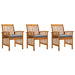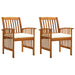 De stoelen zijn vervaardigd uit massief acaciahout, een bekend tropisch hardhout dat bekend staat om zijn weerbestendigheid en duurzaamheid. Het zorgvuldig afgewerkte oppervlak, dat behandeld is met olie, maakt onderhoud een eenvoudige taak: een vochtige doek is voldoende om ze schoon te houden. Het gelatte ontwerp van de stoelen voegt bovendien een rustieke charme toe aan je buitenruimte. De meegeleverde kussens zorgen voor extra comfort, zodat je lange avonden buiten kunt doorbrengen.