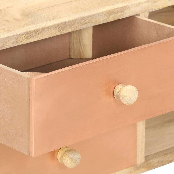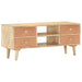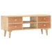 Dit meubelstuk is vervaardigd uit massief mangohout, wat bekend staat om zijn duurzaamheid en weerbestendigheid. Dankzij de indrukwekkende draagkracht en slijtvastheid van het hout, ben je verzekerd van een lange levensduur. Door het voortreffelijke vakmanschap zijn de prachtige houtnerven in elk meubelstuk uniek, wat zorgt voor een authentiek karakter. De tv-kast is uitgerust met vier lades, waardoor je voldoende opbergruimte hebt om alles georganiseerd te houden. De afmetingen van het meubel zijn 110 x 30 x 45 cm (B x D x H), een ideale maat voor verschillende televisies en woonruimtes. Montage is vereist om van het meubel te kunnen genieten.
