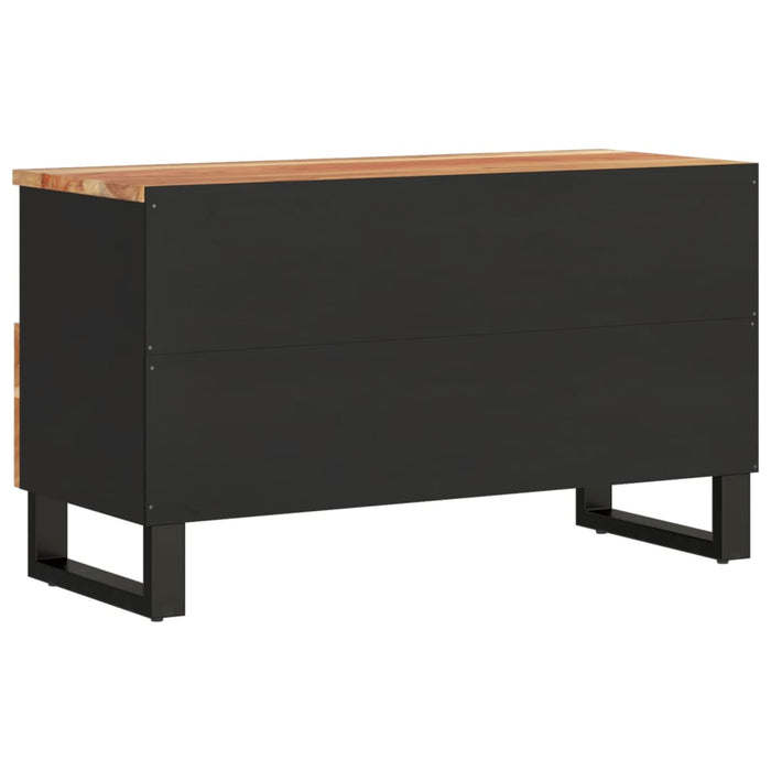 Dit tv-meubel is vervaardigd uit massief acaciahout en is een prachtige toevoeging aan je huis. Met zijn drie open vakken en een lade biedt de meubel voldoende opbergruimte voor tijdschriften, DVD's en andere persoonlijke items. De stabiele ijzeren poten garanderen een stevige basis, terwijl het ruime bovenvlak perfect is voor het uitstellen van decoraties zoals planten en fotolijsten. De afmetingen van het meubel zijn 80 x 33 x 46 cm, met een hoogte van de poten van 10 cm, wat het een ideaal meubel maakt voor zowel grote als kleine woonruimtes. Houd er rekening mee dat de unieke nerfstructuren van het hout ervoor zorgen dat elk exemplaar anders is, wat bijdraagt aan de exclusiviteit van jouw meubelstuk.