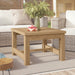 Gemaakt van hoogwaardig massief teakhout, dat bekend staat om zijn indrukwekkende sterkte en weerbestendigheid, biedt deze salontafel een stevig tafelblad. Dit maakt het de perfecte plek voor al uw decoraties, het serveert van drankjes of zelfs als een bijzettafel. De solide constructie garandeert een duurzame en betrouwbare aanvulling voor uw woonruimte, terwijl het ontwerp garant staat voor vele jaren van gebruik.