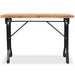 Dieser Tisch besteht aus robustem Stahl und massivem Kiefernholz und ist stabil und langlebig. Er kann einige Unvollkommenheiten aufweisen, die nicht beabsichtigt sind, aber dennoch zum antiken Stil und industriellen Charme des Tisches beitragen.