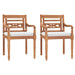 Diese bequemen Stühle bestehen aus hochwertigem Teakholz, das zunächst gewässert, im Ofen getrocknet und anschließend sorgfältig geschliffen wird, um eine perfekt glatte Oberfläche zu erzielen. Teakholz gehört zu den robustesten Holzarten und ist aufgrund seiner Witterungsbeständigkeit eine hervorragende Wahl für Outdoor-Möbel. Dadurch eignen sich die Stühle perfekt für die Schaffung einer entspannten Atmosphäre in Ihrem Garten oder für einen angenehmen Dinnerabend mit Freunden und Familie. Sie erfordern wenig Wartung und sind leicht zu reinigen, sodass Sie mehr Zeit damit verbringen können, Ihren Außenbereich zu genießen.