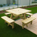 Mit dem quadratischen Picknicktisch KING® schaffen Sie einen einladenden Raum für Familie und Freunde. Die stabile Konstruktion aus Fichtenholz und die durchdachte Unterkonstruktion sorgen dafür, dass dieser Tisch auch unter den unterschiedlichsten Wetterbedingungen jahrelang hält. Die Ecken der Tischplatte und der Sitzflächen sind abgerundet, sodass es sicher und bequem ist, rund um den Tisch zu sitzen – keine scharfen Ecken, die das gemütliche Beisammensein stören!