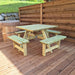 Der Picknicktisch KING® ist aus hochwertigem Fichtenholz gefertigt, das vorab behandelt wurde, um das Holz vor Witterungseinflüssen wie Regen, Wind und Sonne zu schützen. Dadurch können Sie den Tisch das ganze Jahr über draußen lassen, ohne sich Sorgen um Schäden machen zu müssen. Die Wartung ist minimal, sodass Sie mehr Zeit mit dem Genießen und weniger Zeit mit der Wartung verbringen können.