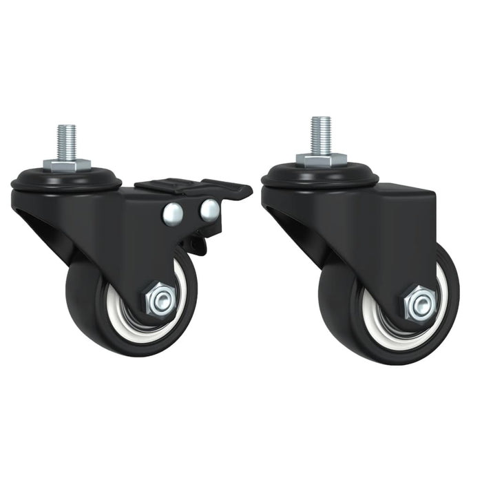 - Mit 4 Rädern, davon 2 mit Bremsen
