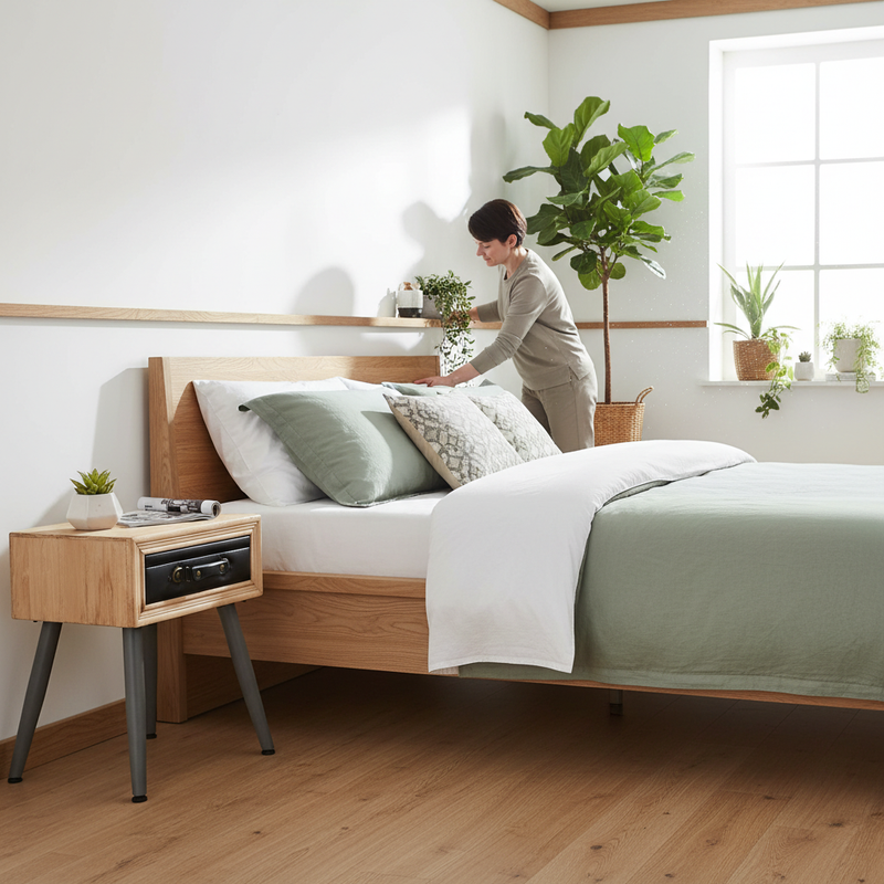 Dieser aus massivem Kiefernholz gefertigte Nachttisch bietet hervorragende Stabilität und Haltbarkeit. Mit einer stabilen Oberseite und einer geräumigen Schublade bietet er ausreichend Stauraum für verschiedene Kleinigkeiten wie Bücher, Brillen und Fernbedienungen, während die einzigartig gestaltete Schubladenfront den Retro-Look unterstreicht. Dank der einfachen Montage ist der Nachttisch schnell einsatzbereit.