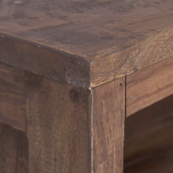 Dieser rustikale Fernsehschrank ist aus massivem Teakholz mit natürlichem Finish gefertigt. Es ist eine zeitlose Ergänzung für Ihr Interieur. Massives Teakholz ist für seine außergewöhnliche Festigkeit bekannt, wodurch es äußerst langlebig und robust ist. Jeder Arbeitsschritt wird mit größter Sorgfalt durchgeführt, sei es Polieren, Lackieren oder Lackieren. Der Schrank verfügt über 1 Tür und 2 offene Fächer zur Aufbewahrung von Schmuck, Multimedia-Geräten, Spielekonsolen und Zeitschriften.
