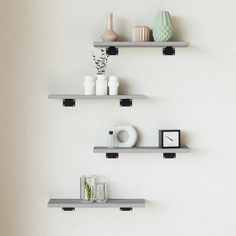 Wandregale, 4 Stück, 40 x 10 x 1,5 cm, Holzwerkstoff, graue Sonoma-Eiche