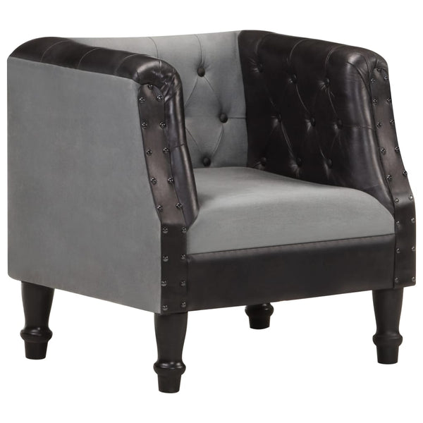 Dieser Eimerstuhl ist mit echtem Ziegenleder und Segeltuch gepolstert, das sich weich anfühlt. Der Ledersessel wird von starken Beinen aus Mangoholz getragen, die für zusätzliche Festigkeit und Stabilität sorgen. Darüber hinaus ist der Bezug mit Nieten versehen, um ihm einen industriellen Look zu verleihen. Dank der geschwungenen Armlehnen und der dicken, gepolsterten Sitzfläche und Rückenlehne ist der Ledersessel der perfekte Ort zum bequemen Sitzen.