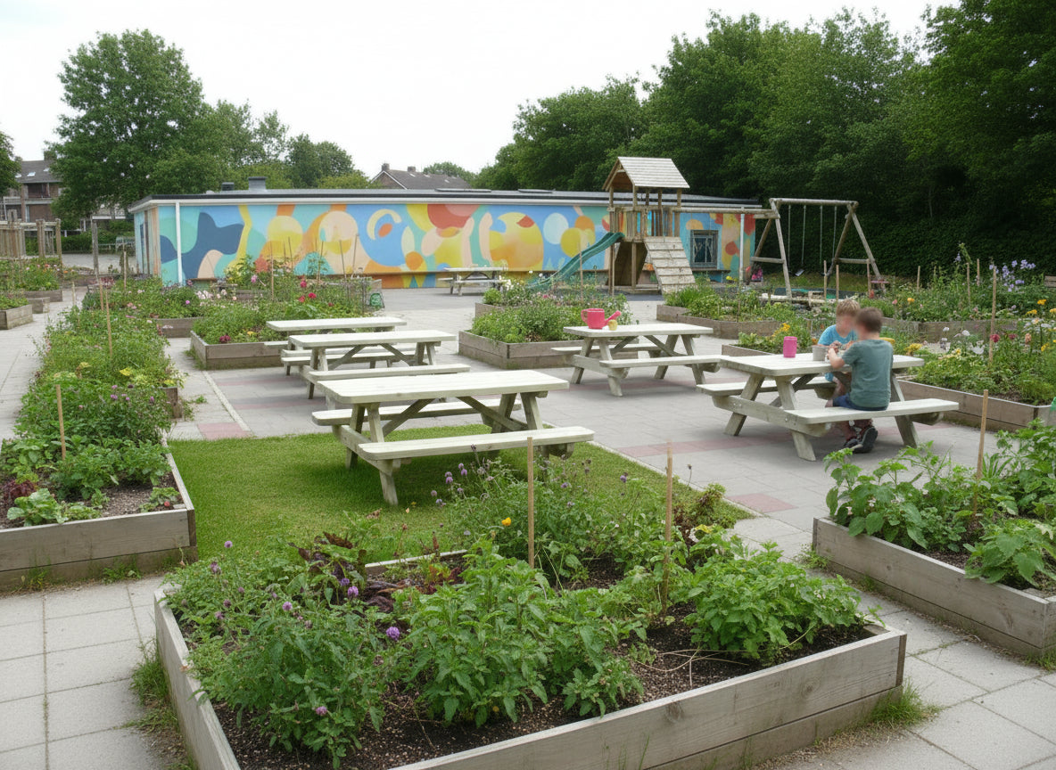 Discover our top-quality children's picnic table, specially designed for little adventurers! With a generous length of 140 cm, this table offers enough space for six little friends to enjoy snacks and play. Perfect for schoolyards, playgrounds, or in the backyard.