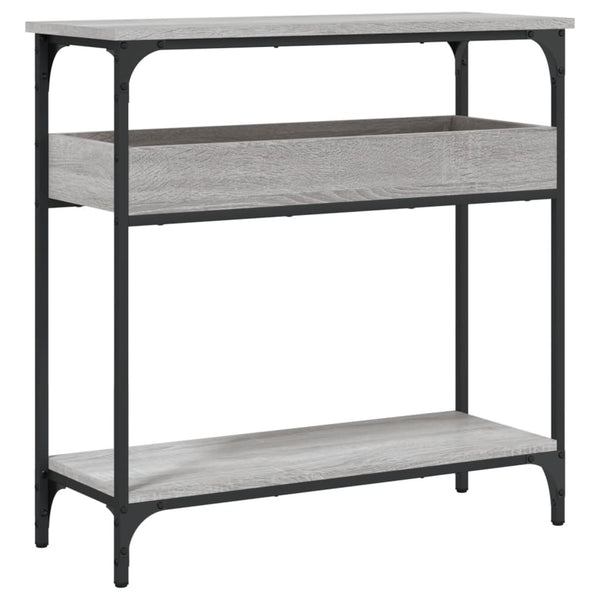 This hallway table from our collection is made from processed wood and metal, which together create a strong and stable piece of furniture that can withstand a bump. With dimensions of 75 x 29 x 75 cm (L x W x H), it provides ample storage space for magazines, books, and decorative items, ensuring your environment always looks neat and organized. The metal frame adds an industrial style to your interior, while the adjustable legs with plastic feet ensure that the table stands firmly on uneven surfaces.