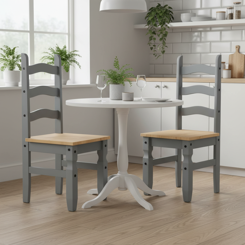 These dining chairs are made from solid pine wood, a beautiful natural material known for its straight grain and rustic appearance. Thanks to the wax finish, the wood retains its character and is also easy to clean with a damp cloth. The dimensions of 42 x 47 x 107 cm (L x W x H) and a seat height of 45 cm provide a comfortable seating experience, while the load capacity of 110 kg per seat attests to the robustness of these chairs. Assembly is required, which contributes to easy transport and setup.