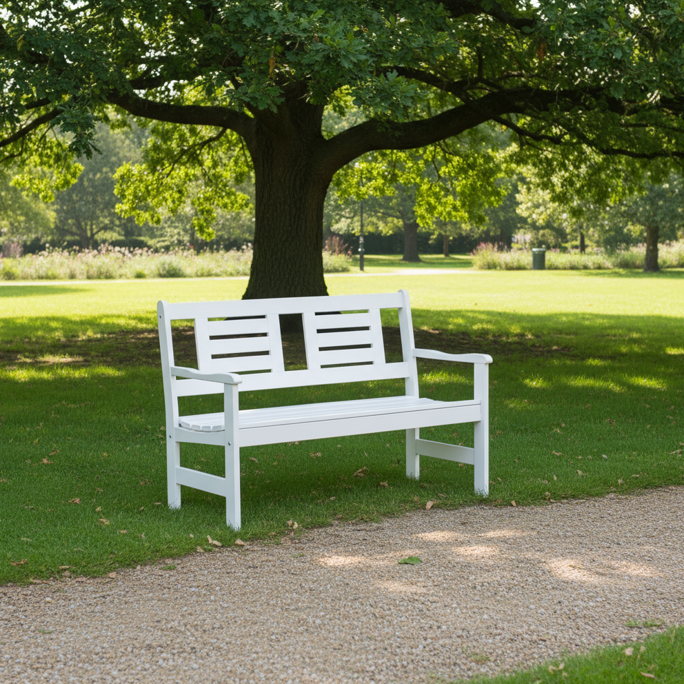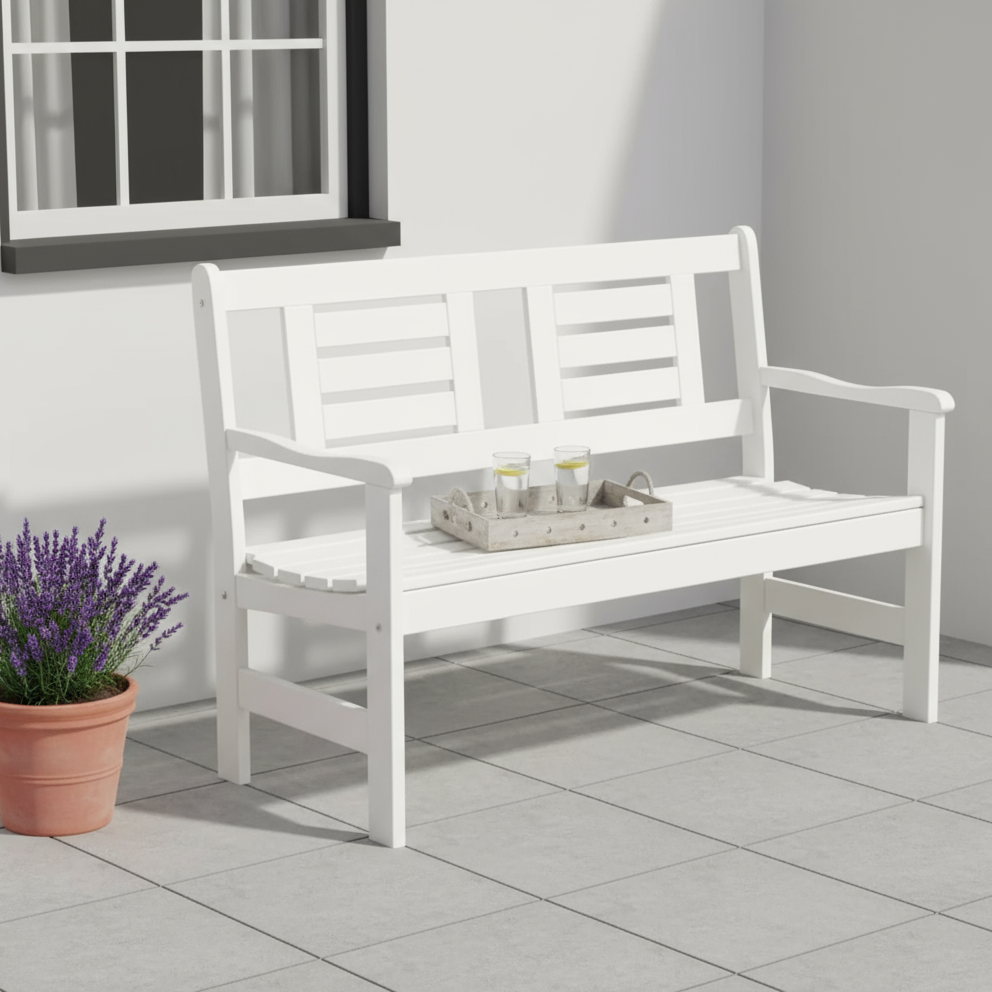 Add a touch of comfort and elegance to your outdoor space with the Amelie 2-seater garden bench of 120 cm, finished in radiant white (KING ®). This garden bench not only offers a delightful seating area but also showcases its modern design and refined white stain, making it effortlessly fit into both contemporary and rustic gardens.