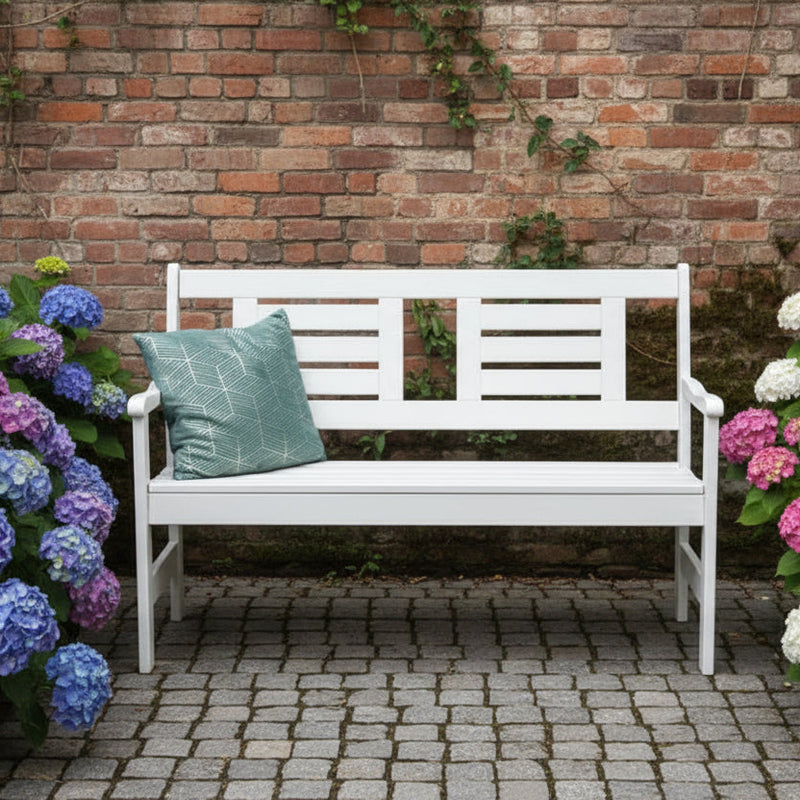 Timeless appearance: The modern design is beautifully complemented by the white stain, giving the bench a timeless and elegant look.