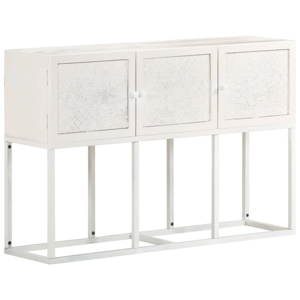 The sideboard is made from high-quality solid mango wood, a tropical hardwood known for its strength and wear resistance. These properties ensure that the furniture not only lasts a long time but also remains stable under various conditions. The strong powder-coated iron frame provides extra support and brings an industrial flair. With three doors, this sideboard offers ample storage space for all your belongings. The sturdy wooden top is perfect for displaying decorative objects such as photo frames and plants. The dimensions of 115 x 30 x 76 cm (W x D x H) make the sideboard suitable for both spacious and smaller interiors.