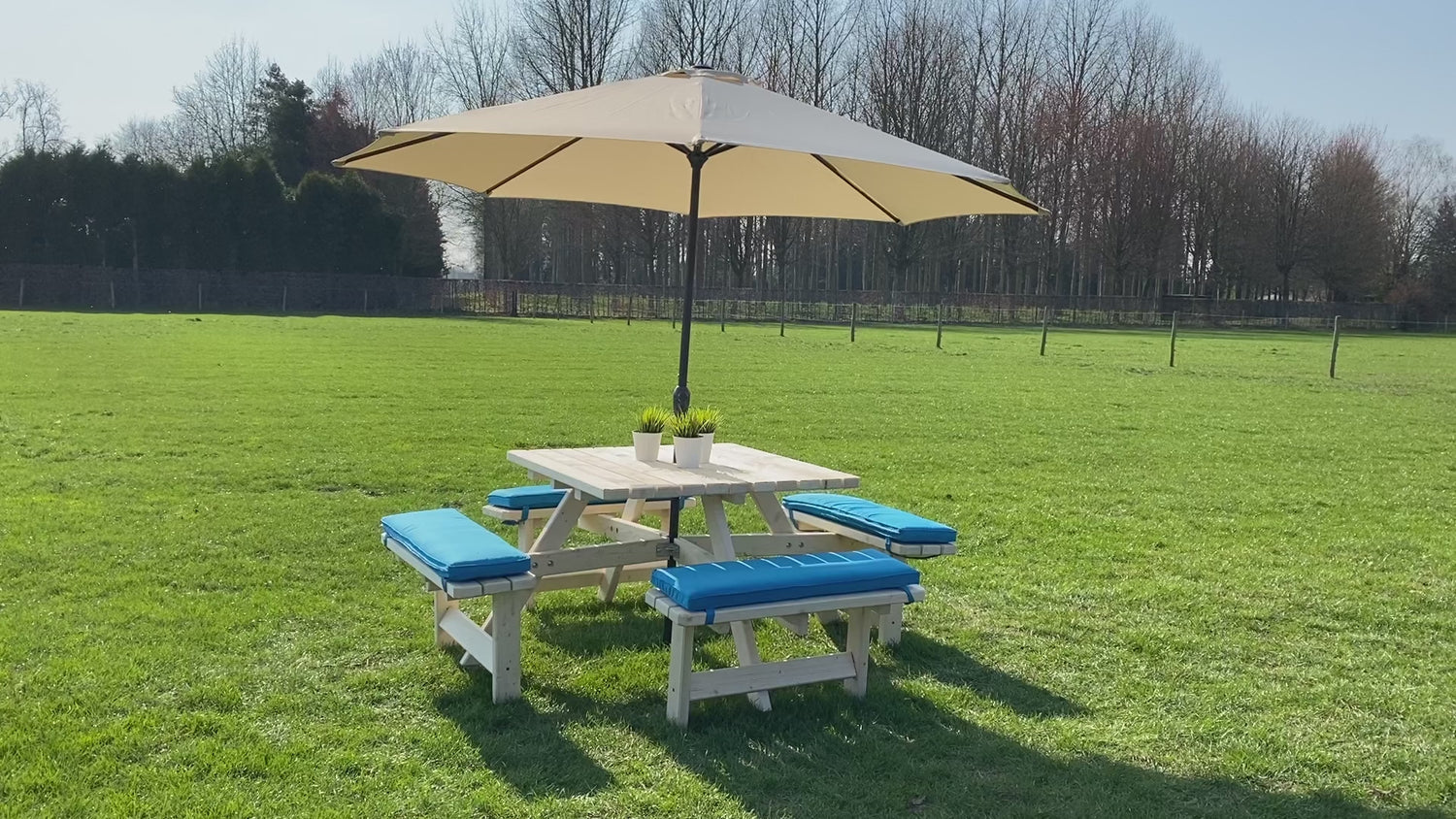 - Square KING picnic table (BLANK): 4 cushions