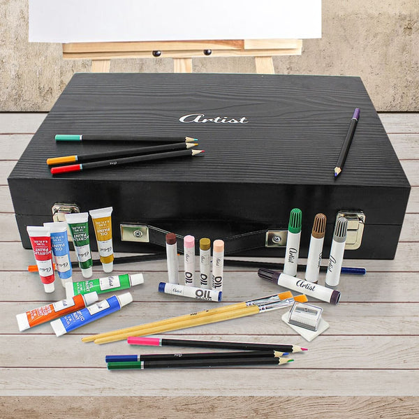 Sí, la maleta de madera está diseñada para mantener organizados tus materiales de arte, pero también puedes usarla para otras herramientas artísticas o suministros de hobby.