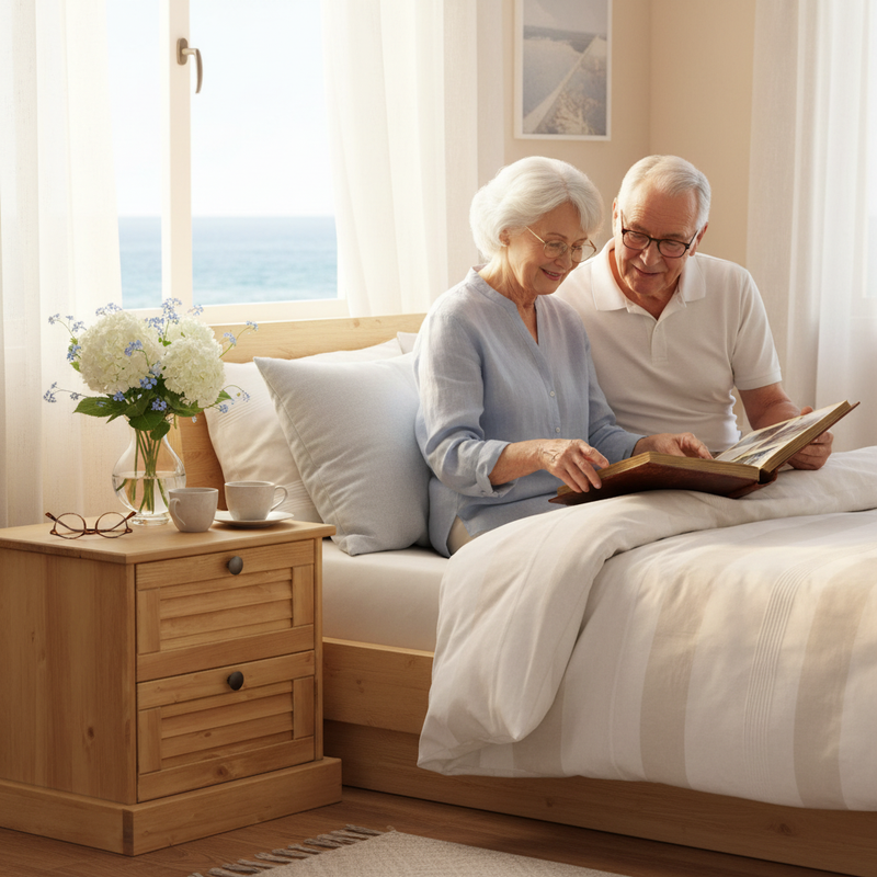 Esta mesita de noche está disponible en varios colores, incluyendo marrón, gris y blanco, para que se integre perfectamente en tu decoración.