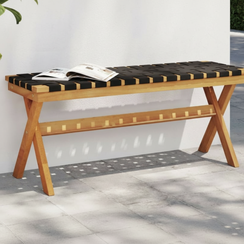 Ce meuble polyvalent est fabriqué en bois d'acacia massif de haute qualité, reconnu pour sa beauté et sa durabilité. La conception tissée du siège offre non seulement un aspect élégant, mais également une respirabilité qui augmente le confort d'assise. De plus, l'utilisation de fibre d'oléfine, un type de fibre de polypropylène, garantit que le banc de jardin résiste aux effets du soleil, vous permettant ainsi de profiter de vos meubles pendant des années. Les dimensions du banc de jardin sont de 100 x 34 x 42 cm (L x l x H) et il a une capacité de charge de 110 kg par siège. Veuillez noter qu'un assemblage est nécessaire pour utiliser le meuble de manière optimale.