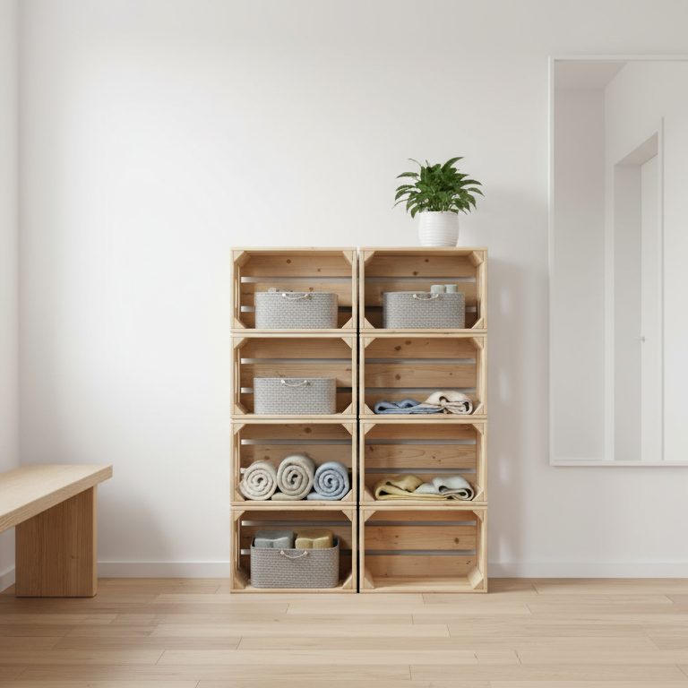 - Bricolage : mini-étagère en empilant des éléments, boîte murale transformée en étagère ou organisateur mobile.