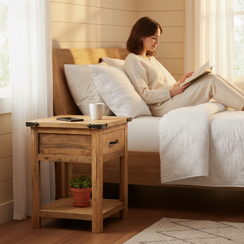 La polyvalence de la table de chevet Volen de Zomango apporte un mariage harmonieux entre fonctionnalité et beauté à votre intérieur. Que vous recherchiez un endroit pour garder vos livres à portée de main ou une plateforme élégante pour vos objets décoratifs, cette table de chevet offre tout cela et bien plus encore.