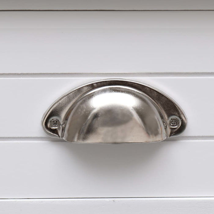 - Conception peu encombrante avec deux tiroirs et une étagère inférieure.