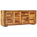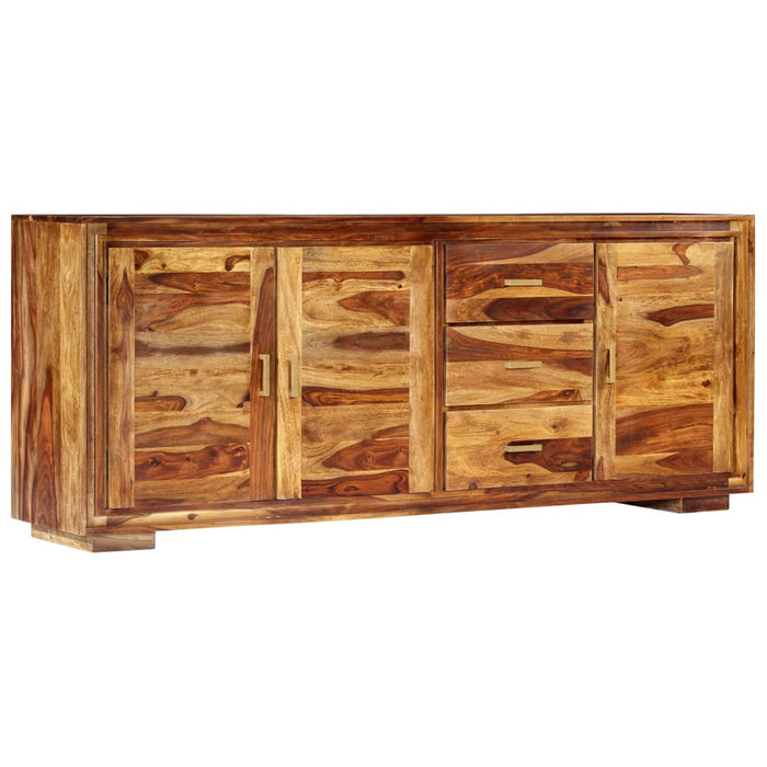 Ce meuble impressionnant possède un plateau solide idéal pour présenter des boissons, des corbeilles de fruits, des cadres photo ou des plantes en pot. Mesurant 200 x 40 x 80 cm (L x P x H) et équipé de trois tiroirs et de trois grands compartiments, il offre beaucoup d'espace pour ranger livres et autres objets personnels. L'utilisation de bois de Sesham massif garantit que ce buffet est non seulement durable, mais qu'il possède également un caractère unique, car les riches grains du bois distinguent chaque meuble.