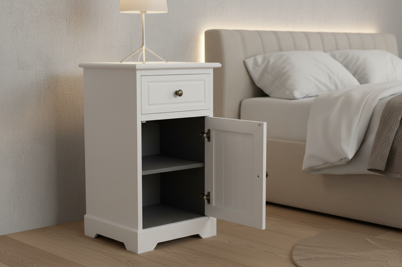 Cette table de chevet complétera parfaitement le décor de votre chambre avec son design chic et sa finition blanc éclatant. Elle peut également être utilisée comme table d'appoint.