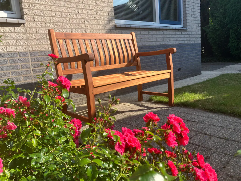 Fantastische bank. Alleen maar hout, echt teakhout, keihard, heel mooi en waardevolle aanwinst van mijn tuin. Veel bekijks ook. Heel blij mee!