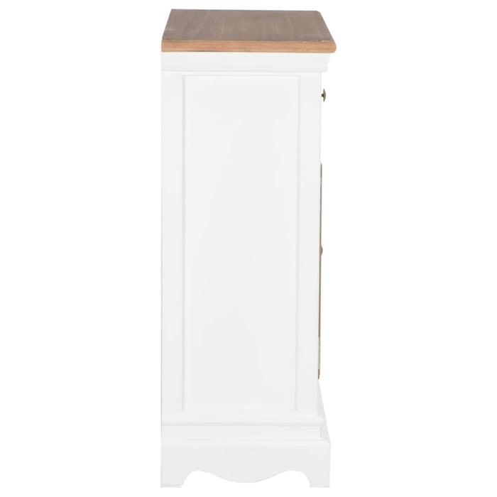 Ce buffet est fabriqué en bois massif de haute qualité et présente un aspect raffiné grâce à sa peinture spéciale. Avec des dimensions de 60 x 30 x 80 cm (L x P x H), il offre suffisamment d'espace grâce aux deux tiroirs pratiques et aux deux compartiments avec portes. Les boutons classiques confèrent au meuble une touche vintage, ce qui confère au buffet un charme intemporel. Il est facile à assembler et également facile à nettoyer avec un chiffon humide. Veuillez noter que le produit doit être fixé au mur avec le support mural fourni pour éviter tout basculement ou chute. Cela offre une sécurité supplémentaire, en particulier dans les familles avec enfants.