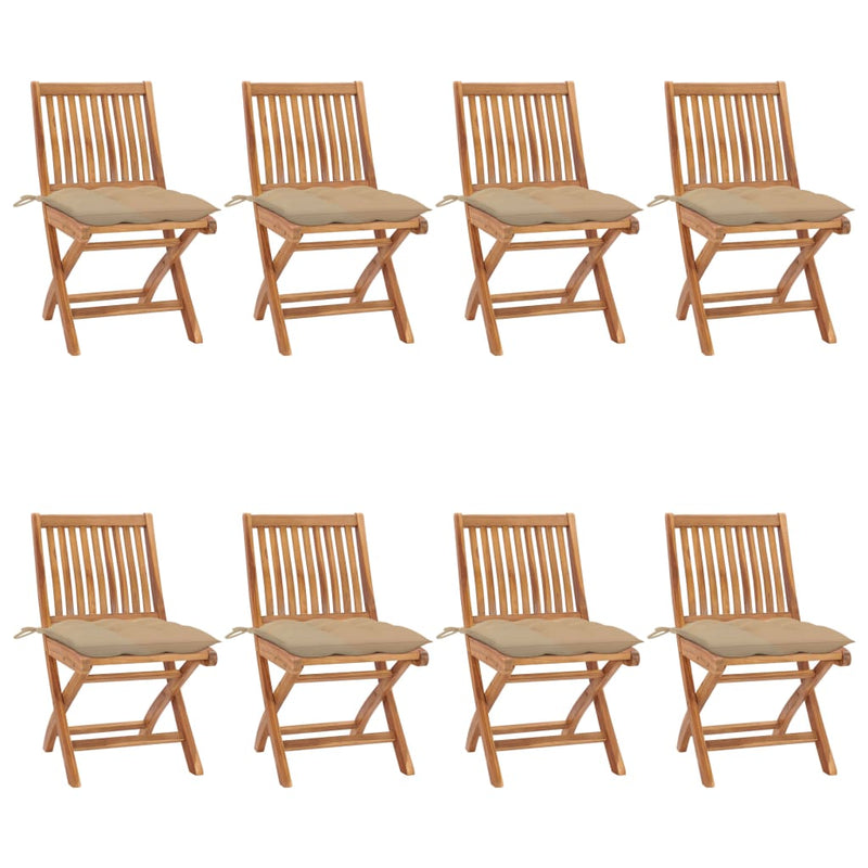 Les chaises sont fabriquées en bois de teck dur de haute qualité, connu pour sa durabilité et sa résistance aux intempéries exceptionnelles. Le bois subit un traitement minutieux : il est arrosé, séché au four puis soigneusement poncé pour une finition lisse. Ces caractéristiques garantissent que les chaises sont non seulement belles à regarder, mais qu'elles durent également longtemps. L'utilisation de bois de teck rend cet ensemble de meubles particulièrement adapté à une utilisation en extérieur, où le bois est non seulement robuste, mais aussi facile à nettoyer. La fonction pliante vous donne la possibilité d'économiser de l'espace lorsque les chaises ne sont pas utilisées, tandis que les coussins inclus offrent un confort supplémentaire. Chaque coussin est livré avec deux jeux de cordes pour être solidement attachés à la chaise, afin que vous puissiez profiter de votre expérience d'assise sans aucun souci.