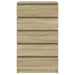Mesurant 60 x 36 x 103 (L x l x H), cette commode offre une disposition spacieuse avec cinq tiroirs pratiques, ce qui permet de ranger facilement tous vos articles. Le bois traité, de haute qualité et doté d'une surface lisse, garantit une construction durable et stable qui est également résistante à l'humidité. Le dessus robuste de la commode offre l'endroit idéal pour des objets décoratifs tels que des plantes ou des cadres photo, tandis que la surface facile d'entretien peut être facilement nettoyée avec un chiffon humide.