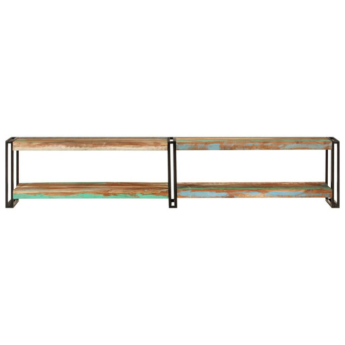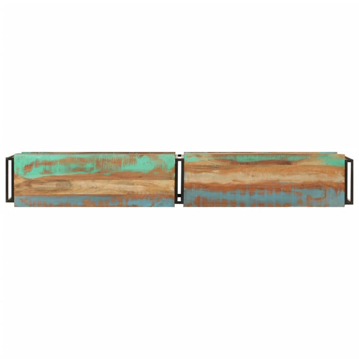 Ce meuble TV tendance présente un design élégant et moderne, ce qui en fait un ajout décoratif et pratique à votre intérieur. Fabriqué à partir de bois massif recyclé, construit à partir de matériaux réutilisables tels que le teck et le bois de manguier, chaque meuble a un look unique. Ce meuble n'attire pas seulement l'attention, mais avec ses dimensions de 200 x 30 x 40 cm (L x L x H), il offre également suffisamment d'espace de rangement. Il offre des étagères où vous pouvez ranger soigneusement les essentiels du quotidien et est équipé d'un cadre en métal robuste qui assure stabilité et durabilité. Utilisez le plateau robuste pour placer des plantes, des cadres photo et d'autres objets décoratifs et donnez une touche personnelle à votre salon.