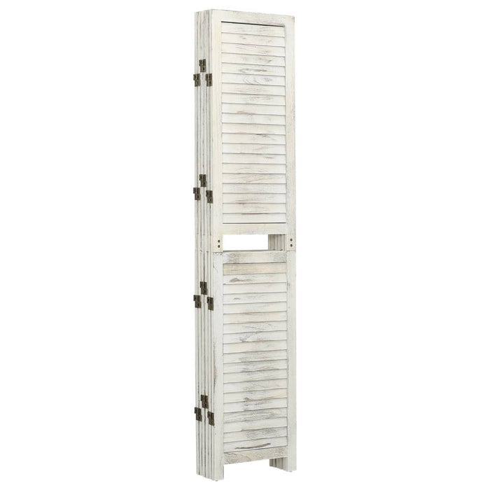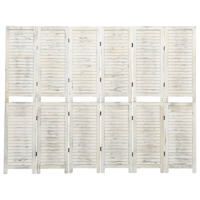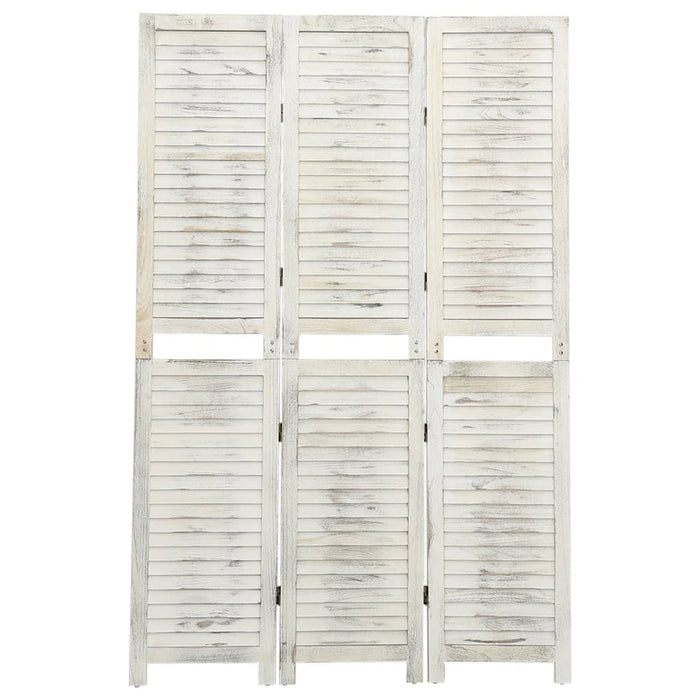 Séparateur de pièce avec 6 panneaux en bois massif blanc antique