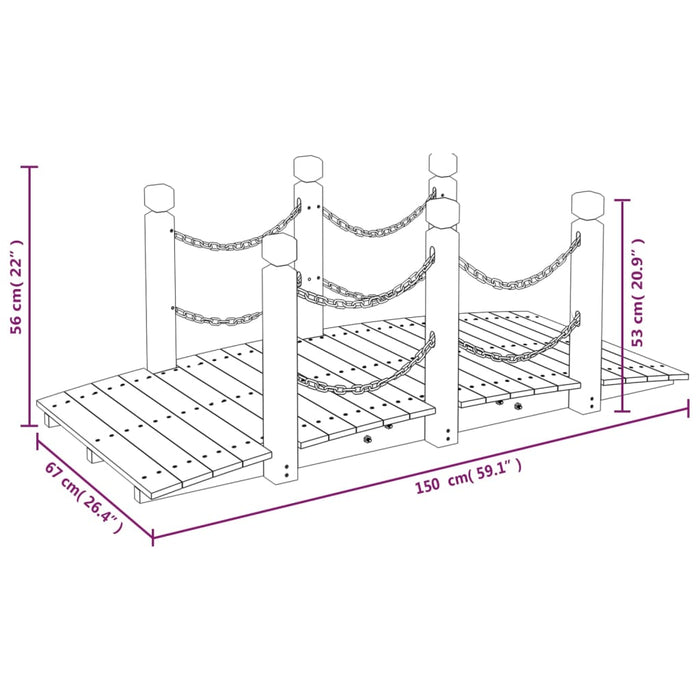 Pont de jardin avec rails à chaînes 150x67x56 cm en bois de pin massif