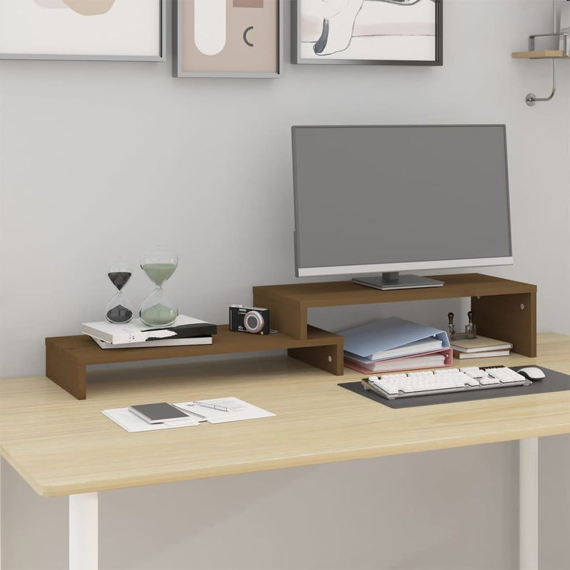 Le support pour moniteur a un design minimaliste qui s'intègre parfaitement dans n'importe quel environnement. Mesurant (52-101) x 22 x 14 cm (L x P x H), il offre suffisamment d'espace pour surélever votre moniteur et ranger des objets importants. Le cadre robuste garantit que votre support d'ordinateur est non seulement beau, mais également fonctionnel, avec une base stable qui garantit une fiabilité durable. Vous pouvez également utiliser l'espace de stockage sous ce support pour votre clavier, votre console de jeu ou d'autres appareils multimédias, ce qui contribue à un espace de travail plus soigné.