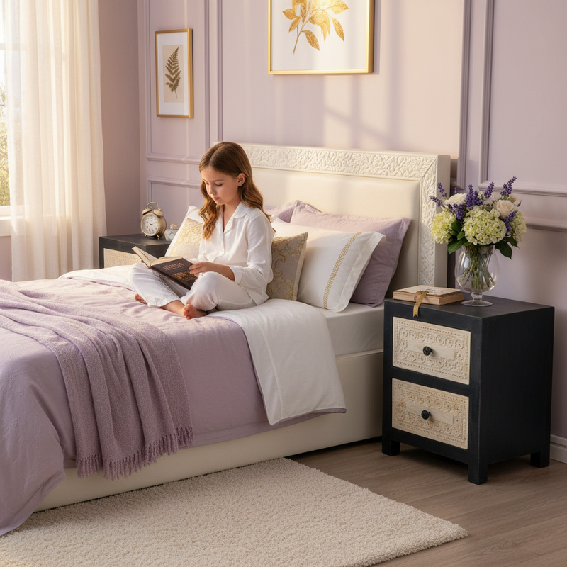 | Stockage | 2 tiroirs avec motif sculpté à la main |