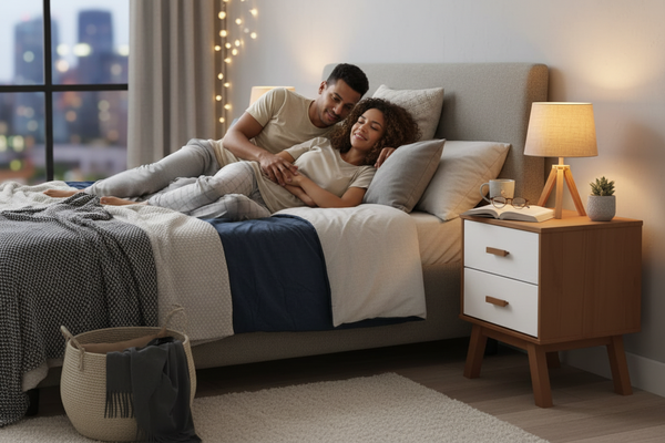 Avec deux tiroirs spacieux, la table de chevet offre suffisamment d'espace de rangement pour organiser de petits objets tels que des magazines, des livres ou des télécommandes. Le plateau est idéal pour les objets décoratifs, tels que les cadres photo ou les plantes, qui vous permettent d'exprimer votre style personnel. Les pieds en bois rehaussent l'aspect naturel et offrent une stabilité supplémentaire, faisant de cette table de chevet un choix parfait pour différents styles d'intérieur.