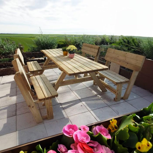 PACK 6 - Table de pique-nique carrée (naturelle) + huile de bois gratuite