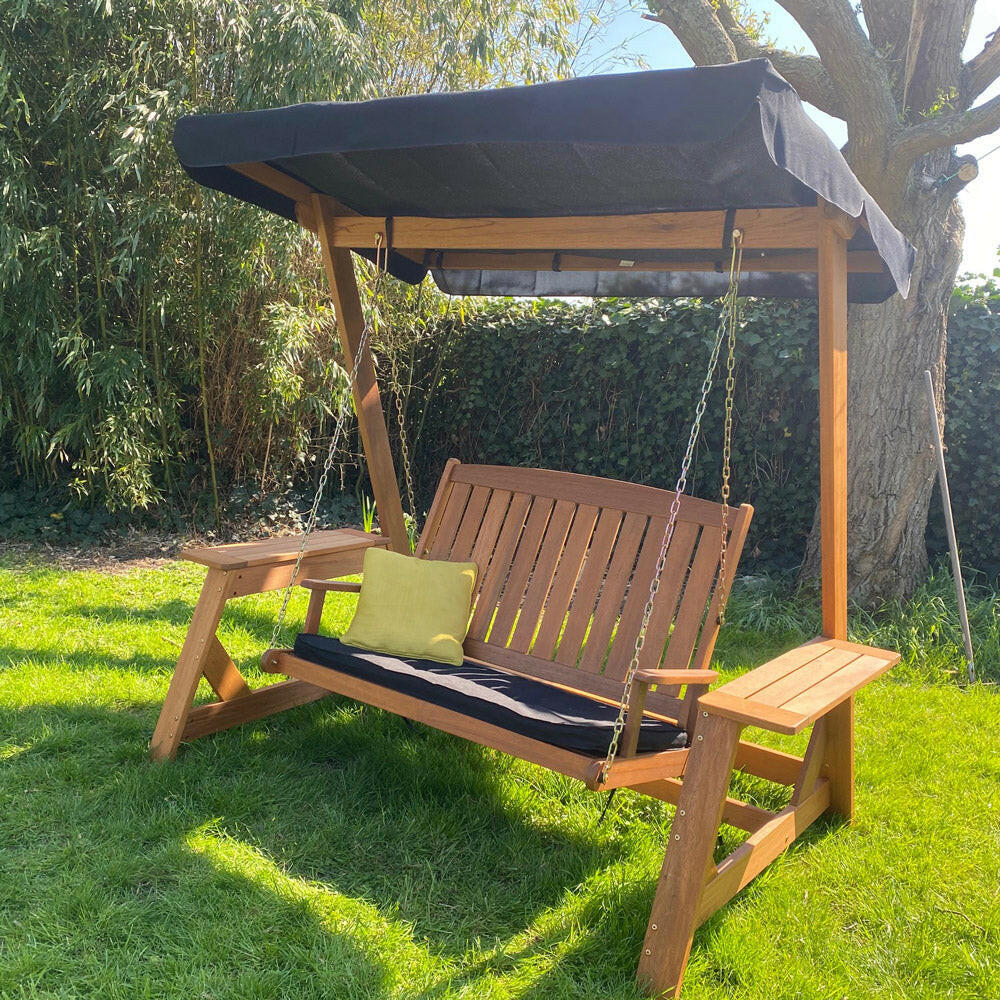 Balançoire en bois dur pour deux personnes avec coussins et auvent - Bois Meranti