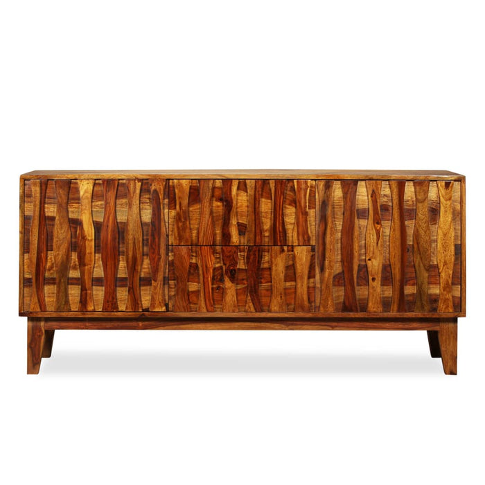 Doté d'un plateau robuste, ce buffet offre un endroit parfait pour vos décorations préférées, telles que des boissons, des paniers de fruits et des cadres photo. Les 2 tiroirs pratiques et les 2 compartiments spacieux vous garantissent suffisamment d'espace de rangement pour les livres et autres nécessités. Fabriqué à partir de bois de Sesham massif de haute qualité, le buffet n'est pas seulement une déclaration visuelle mais aussi un choix durable. Ce bois dur tropical, également connu sous le nom de palissandre, est connu pour son grain riche et sa belle finition, rendant chaque pièce unique.